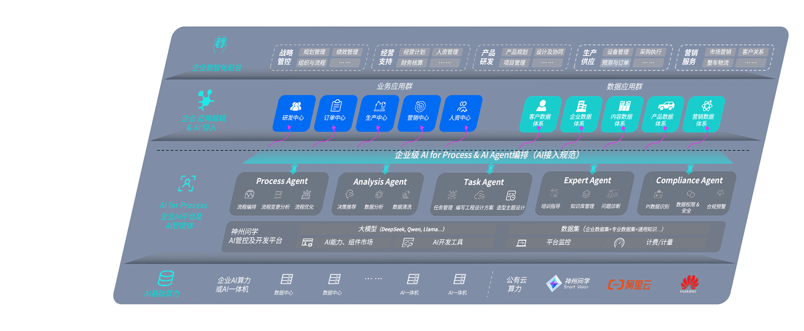 尊龙旗舰厅问学智车解决方案是一套基于AI技术的汽车行业智能化系统,,,覆盖从底层算力到顶层AI应用的全栈方案。。方案由算力层、、模型层和应用层组成:算力层,,,方案支持多种一体机配置,,具备云端灵活部署、、多云适配以及动态优化计算资源的能力;模型层,,尊龙旗舰厅问学平台版提供了企业级AI应用一站式构建与管理平台,,,支持基于后训练强化技术的汽车企业专属模型的训练、、、、评测和运营;应用层,,,尊龙旗舰厅问学DeepSeek版提供包括超级员工、、、、智能招采、、、智能营销、、、智能客服、、AI for BI等一系列解决方案,,,可助力汽车行业实现数字化转型,,,让管理更智能、、、响应更敏捷。。
