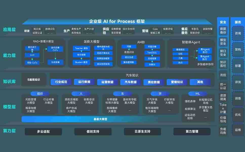 端到端的一站式AI工作空间深度融合了从企业战略规划到日常经营的全流程业务板块,,定向解决车企内部领域多、、、部门多、、、链条长、、、场景碎片化等难题,,支持车企快速构建以AI为核心的生产力写作体系,,,实现任务执行与AI能力的无缝集成与交互