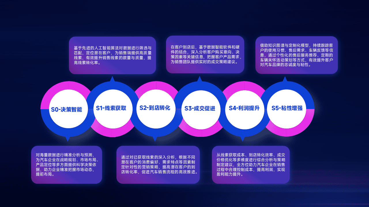 通过拓宽潜在客户来源、、优化线索分配并提高到店转化率,,,以增强销售效率。。。。同时,,,利用线索数据不断优化分析模型,,,有效提升转化率,,扩大营销影响力。。。